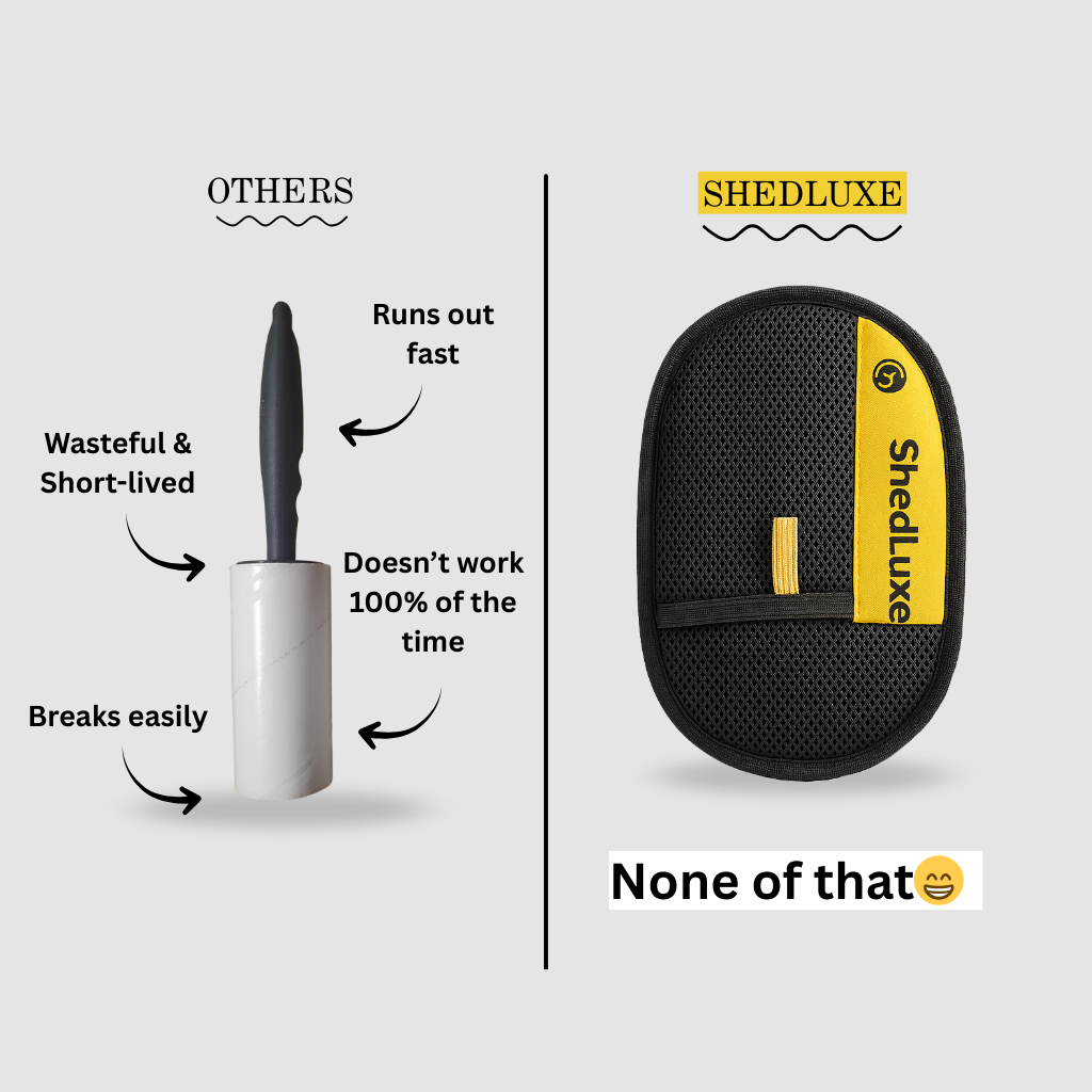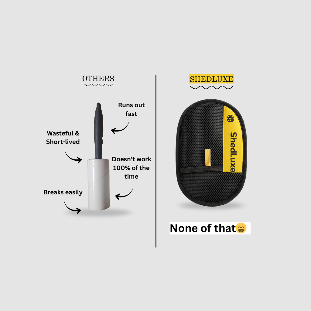 - Lint rollers are wasteful & short-lived, ShedLuxe™ lasts for years and creates no mess or disposable waste.